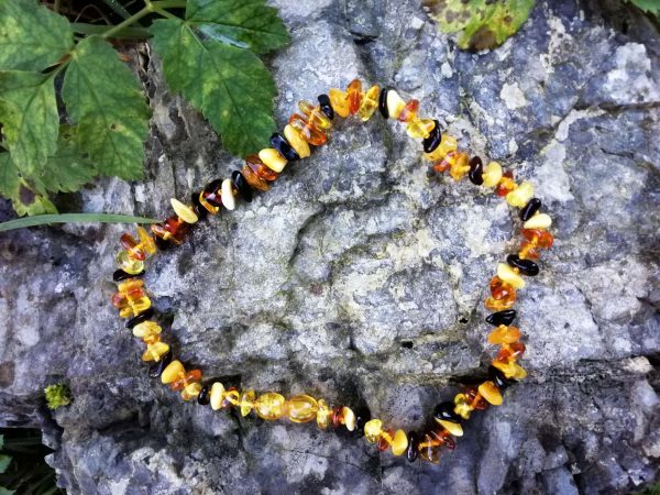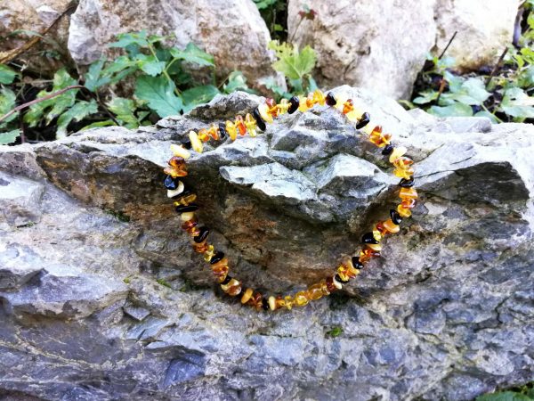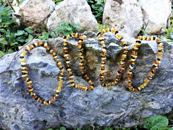 Ogrlica je narejena iz baltskega jantarja, približno 33cm dolga.